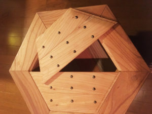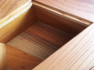 使用している金属は太鼓鋲のみ、すべて枘(ほぞ)と留(とめ)で組んでいます。